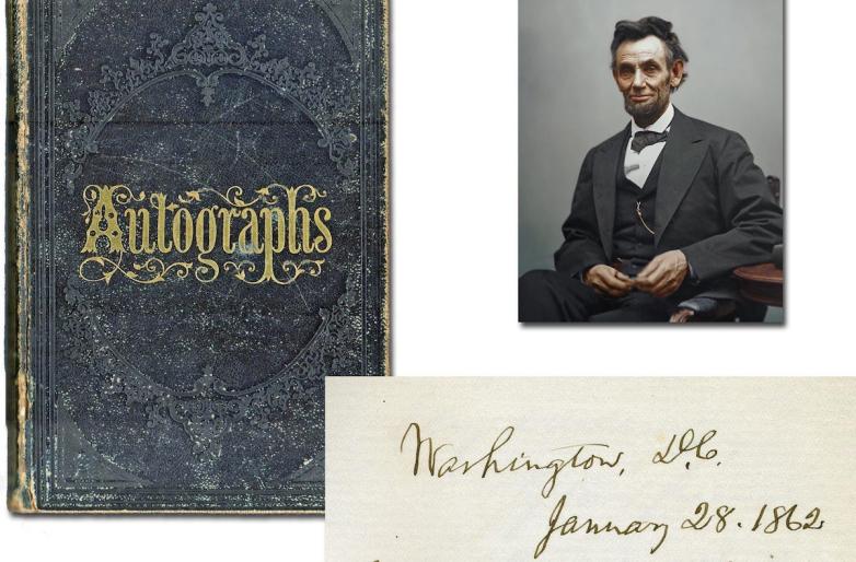 Victorian autograph album containing the signature of Abraham Lincoln and 226 members of his administration and Congress. Estimate: $12,000-14,000