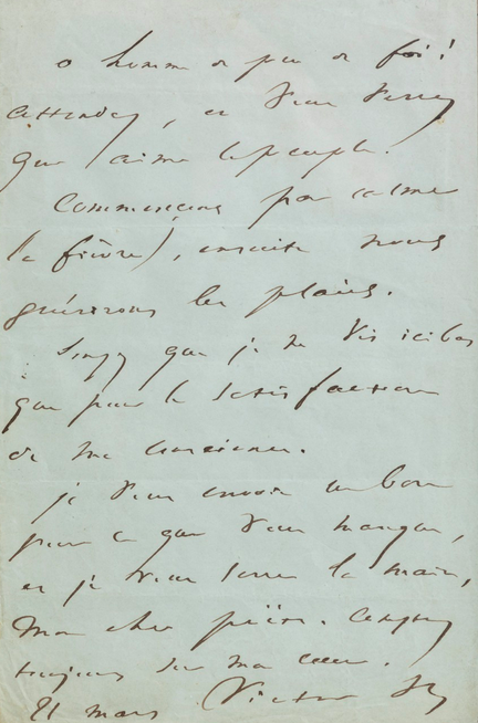 Victor Hugo Autograph Letter. Hugo is one of the very few authors that turn up in these sales. The novelist penned this letter (pictured at left) to fellow French man of letters, Alphonse de Lamartine, in 1848 following the February Revolution, calling him a man of little faith. The auction estimate is €3,000-5,000 ($3,400-5,600).