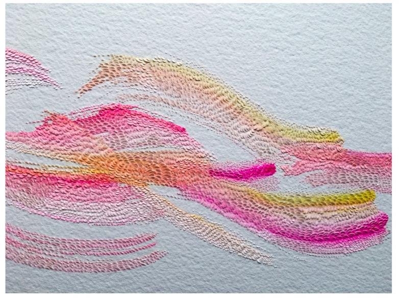Lucha Rodriquez’s Knife Drawing XX, 2018. Watercolor on paper.