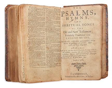 The Bay Psalm Book, Cambridge, printed for Hezekiah Usher of Boston, circa 1648-65. Estimate $50,000-75,000.