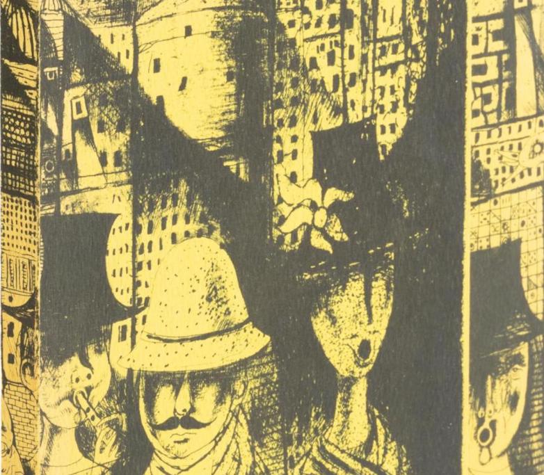 A rare Bukowski work being offered is a copy of Crucifix in a Deathhand, one of twelve specially inscribed copies with original artwork and saffron covers. The original inscription/painting by Bukowski, in red paint, reads: “Spiders die at night too without reading Dylan Thomas. Good night, Charles Bukowski” followed by a drawing of a spider ($5,000-8,000).