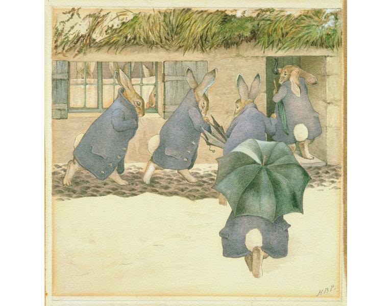 The Rabbit Christmas Party: The Arrival, c. 1892, in watercolor, pen and ink.