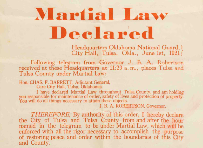 A broadside announcing martial law during the 1921 Tulsa Race massacre will be offered in Heritage Auctions' April 25-26 Americana & Political auction.