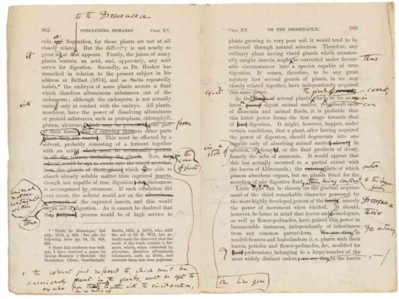 Darwin's revised proof sheets for Insectivorous Plants