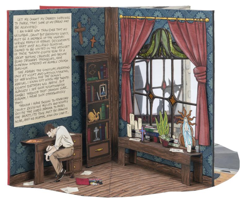 Batsel’s unique book is one of several headed to auction on August 28, estimated at $700-1,000. It was consigned by the Caxton Club, Chicago’s book collector’s club, which commissioned several pieces for its 125th anniversary. The books and specialty bindings created by artists Ben Blount, Sam Ellenport, Lesa Dowd, Jennifer Farrell, Mardy Sears, and Batsel took their cue from the club’s latest publication, Chicago by the Book: 101 Publications that Shaped the City and Its Image, and were presented to the club this past June. According to club president Jackie Vossler, “The club was awed by the contributions but is now offering them at auction in order that we may fund our continued charitable programs.” Those programs include scholarships and grants for book artists.