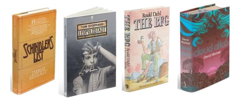 Authors: John le Carré, (1931–2020). The Spy Who Came in from the Cold. London: Victor Gollancz, 1963. (Illustrated on page one top). (Estimate £8,000 – 12,000), realised £35,280; Hilary Mantel (b. 1952), Bring Up the Bodies. London: Fourth Estate, 2012. (Estimate £4,000 – 6,000), realised £30,240; David Mitchell (b.1969), Cloud Atlas. London: Sceptre, 2004. (Illustrated below far right). (Estimate £4,000 – 6,000), realised £27,720; Tom Stoppard (b.1937), Leopoldstadt. London: Faber and Faber, 2020. (Illustrated below second left). (Estimate £2,000 – 3,000), realised £21,420; Alan Bennett (b.1934), The History Boys. London: Faber and Faber, 2004. (Estimate £4,000 – 6,000), realised £17,640; Thomas Keneally (b.1935), Schindler’s List. New York: Simon and Schuster, 1982. (Estimate £3,000 – 5,000), realised £16,380; Quentin Blake (b.1932, illustrator), – Roald Dahl (1916–1990). The BFG. London: Jonathan Cape, 1982. (Illustrated below second from right). (Estimate £6,000 – 9,000), realised £13,860; Salman Rushdie, (b.1947), Midnight’s Children. London: Jonathan Cape, 1981. (Estimate £4,000 - 6,000), realised £11,970; Margaret Atwood (b.1939), The Handmaid's Tale. London: Jonathan Cape, 1986. (Estimate £4,000 – 6,000), realised £11,340.