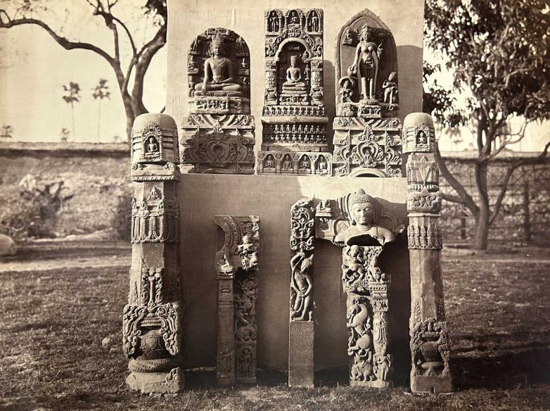 Unidentified Photographer. Sculpted fragments at archeological site. Albumen print, 1860s (#1527)
