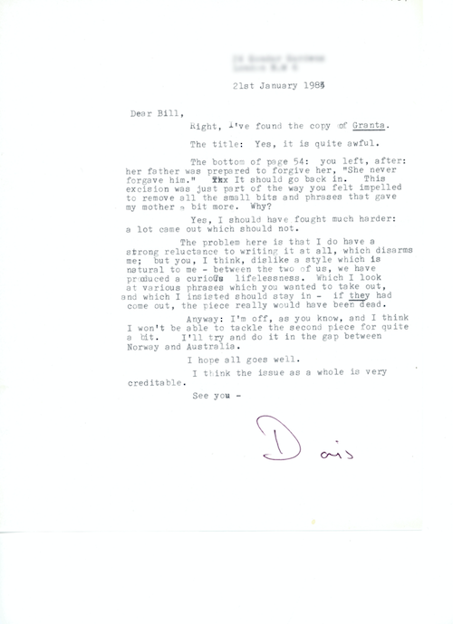 A letter from the Nobel Prize-winning author Doris Lessing, responding to some edits she disagreed with, is one highlight. She writes, “The problem here is that I do have a strong reluctance to writing it at all, which disarms me; but you, I think, dislike a style which is natural to me – between the two of us, we have produced a curious lifelessness.”