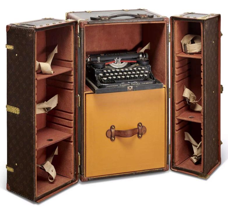 The Hemingway Library Trunk was first designed in 1927 by Gaston-Louis Vuitton for Ernest Hemingway as a travel library, unfolding in two parts. Available in several variants, one of these versions, a yellow Vuittonite Library Trunk with drawers and space for a typewriter, will be going under the virtual hammer at Christie's' online sale running June 19 through July 3.