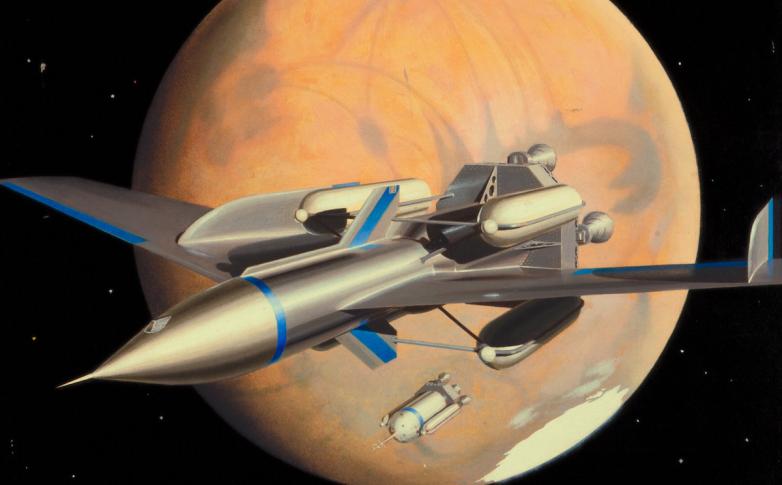 Just a couple of months after the Perseverance Rover landing on Mars, Chesley Bonestell’s The Exploration of Mars book cover, Winged Rocket Ferry Orbits Mars Prior to Landing after 250-Day Flight, 1956 soared to $87,500, nearly three times its high pre-auction estimate. The offered image appeared on the cover of Wernher von Braun’s iconic book, The Exploration of Mars. The painting illustrates von Braun's design for the space ship that would allow humans to go where no man had gone before.