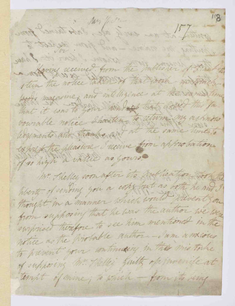 Mary Shelley's Frankenstein Letter to Sir Walter Scott on Display For One Day Only