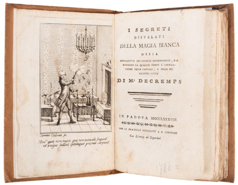 A 1788 copy of Henri Decremps' I Segreti Disvelati Della Magia Bianca / Cinque Sessioni Oltre un Trattato Della Bacchetta Magica realized $3,360.