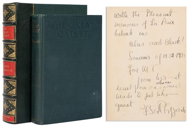 A presentation copy of Fitzgerald's Great Gatsby (1925), inscribed to Margaret Turnbull, is estimated to reach $30,000–50,000 at auction this week.