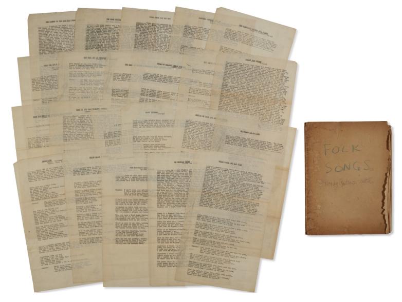 An 85-page collection of song lyrics written mainly by the great American singer-songwriter Woody Guthrie is coming to auction later this month. The portfolio dates to the 1940s and includes mostly typescript, occasionally annotated drafts and variants of folk songs, many of which later appeared in the anthology, Hard Hitting Songs for Hard-Hit People. It is expected to realize $8,000-12,000 at Christie’s by the online auction’s close on January 27.