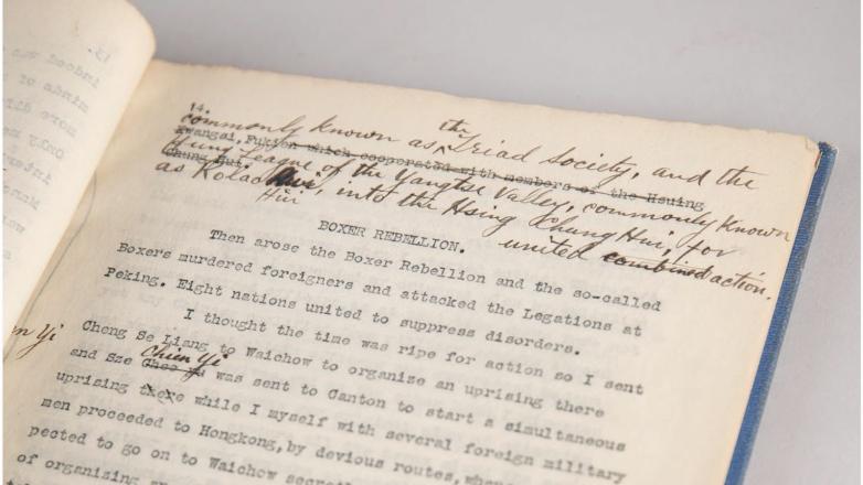 Originating from the collection of Paul Myron Wentworth Linebarger, an American lawyer and legal adviser to Sun Yat-sen, the manuscript begins with Sun Yat-sen reflecting on the revolution that transformed China from a monarchy into a republic. It covers key events in Sun's life, including the First China-Japan War, his time abroad in America, Europe, Japan, the Boxer Rebellion, the Wuchang Uprising, and international relations.