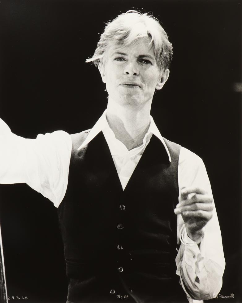 David Bowie, the subject of some of Finnell’s most iconic shots, was the photographer’s favourite, his stage sets always proving “photographer lighting friendly.” The sale includes some of his most iconic images of Bowie, including Bowie as The Thin White Duke from the Station to Station tour (Los Angeles Forum, February 9, 1976), guided at £250-350, and Bowie as Ziggy Stardust during the eponymous tour (Long Beach Arena, March 10, 1973) at £200-300.