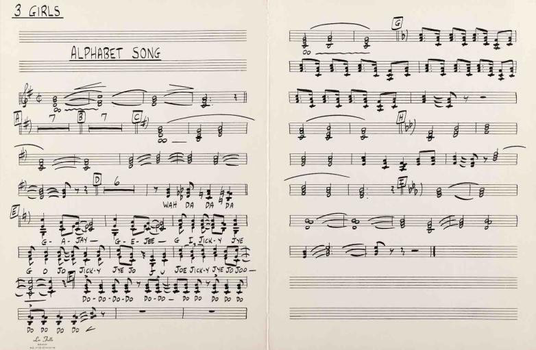 - the Swingin The Alphabet original handwritten score from the Three Stooges short Violent is the World for Curly (Columbia, 1939) which includes lyrics and the complete score for Piano, "3 Girls", including three violin parts, as well as viola, cello, bass, three flutes, two trumpets, a trombone, drums and xylophone, as well as what appears to be a conductor's score