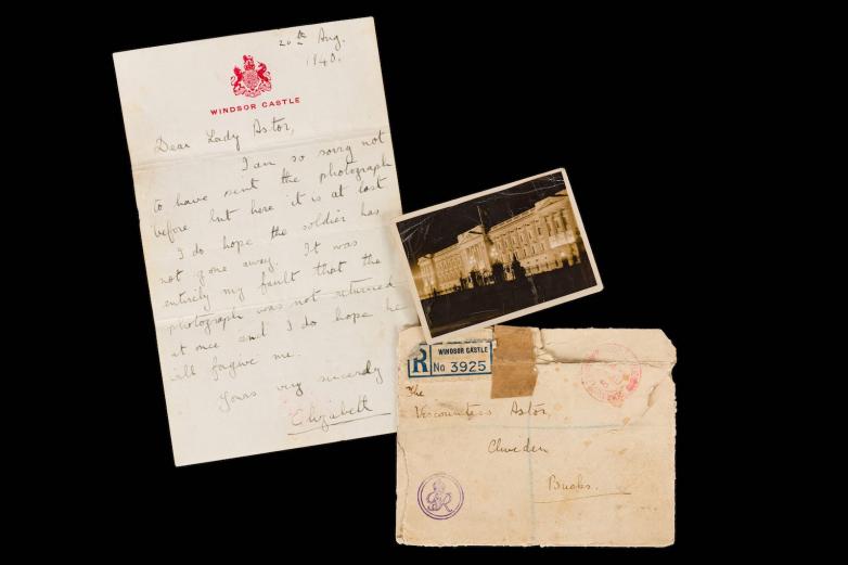 The letter, written from Windsor Castle on August 26, 1940 to Lady Aston, includes a signed photograph of the castle that the future queen had promised to return to a Canadian soldier in convalescence at Cliveden.