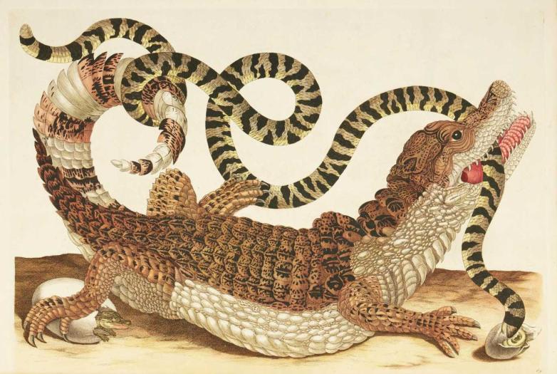 Illustration from Maria Sibylla Merian's Dissertatio de Generatione et Metamorphosibus Insectorum Surinamensium (1726), offered at Arader Galleries this week.