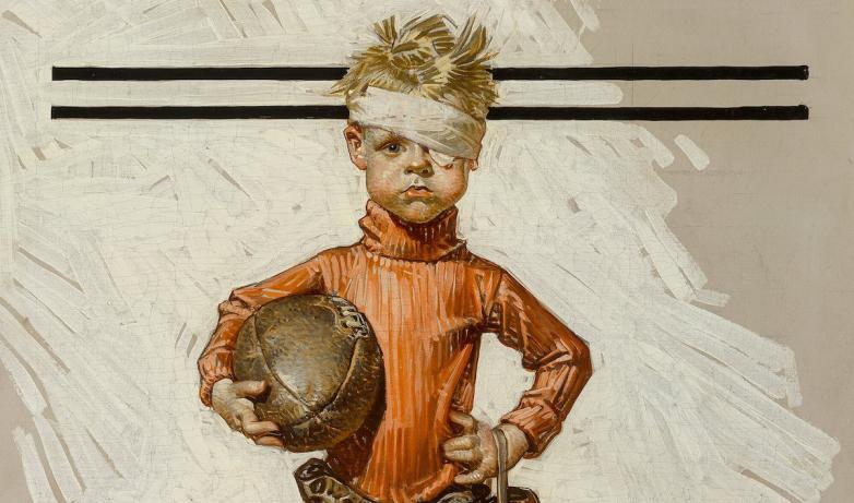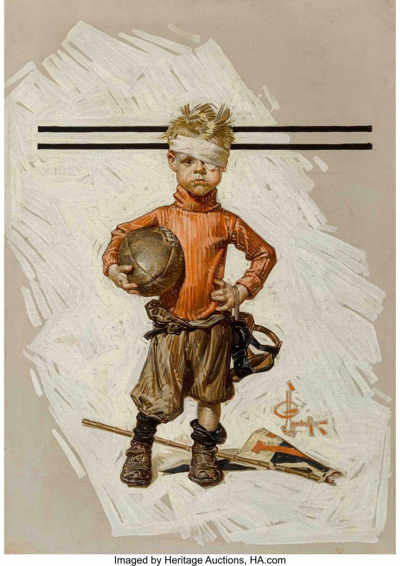 The extraordinary portrait of a bruised, bandaged, scuffed-up but proudly defiant young boy had never before been to auction. In fact, until now this delightful work from the creator of The Arrow Collar Man has resided with one family for nearly a century. And it looks today as it did upon its creation: The painting has never been relined and remains housed on its original stretcher.
