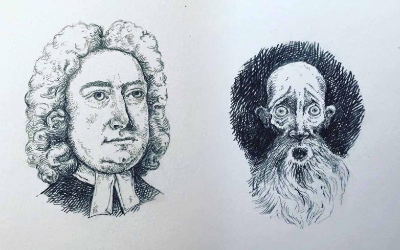 Regular ink wouldn’t be readily available, Carey reasoned, so Geppetto would have had to improvise. And then the inspiration hit him: “Of course, squid ink! So I bought some squid ink and drew with it. And I can’t grow a beard, but I thought he would have a huge beard, and he would have to make his paint brushes out of beard hair. So I went to a hirsute friend and asked for some of his beard hair, and he was very obliging.”