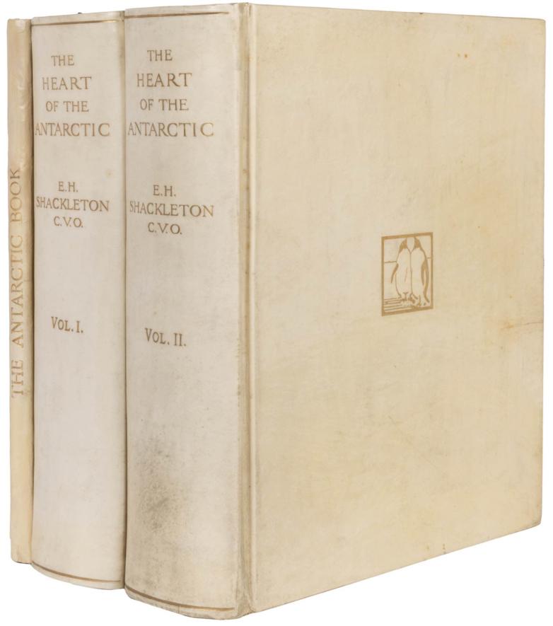 Lot #195, Ernest H. Shackleton's (1874-1922) The Heart of the Antarctic, Being the Story of the British Antarctic Expedition of 1907-1909 and The Antarctic Book. Winter Quarters 1907-1909, estimated at $20,000-30,000.