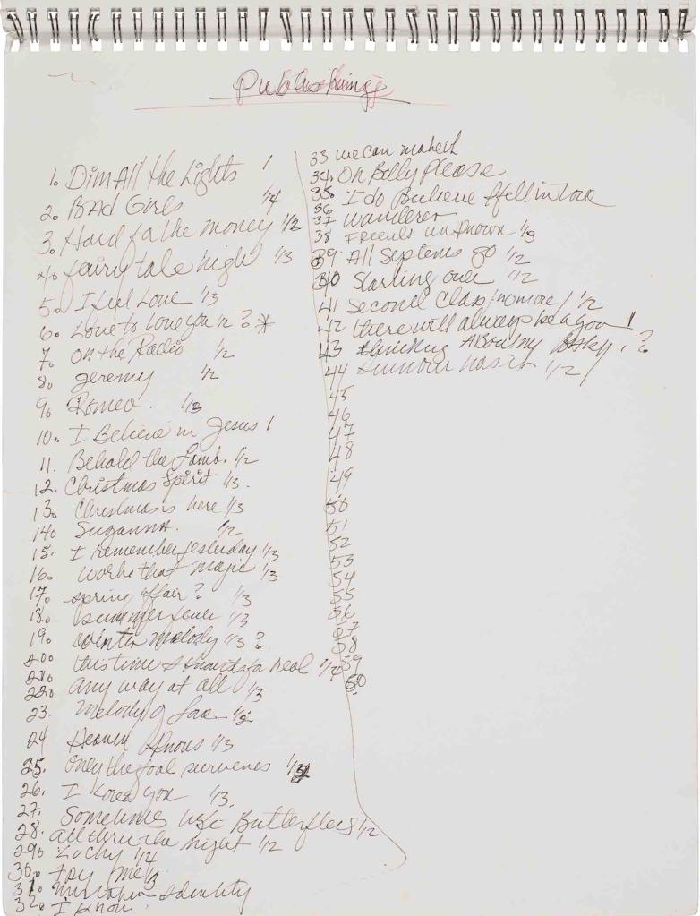 The Christie’s sale of The Collection of Donna Summer included examples of autographed handwritten lyrics.