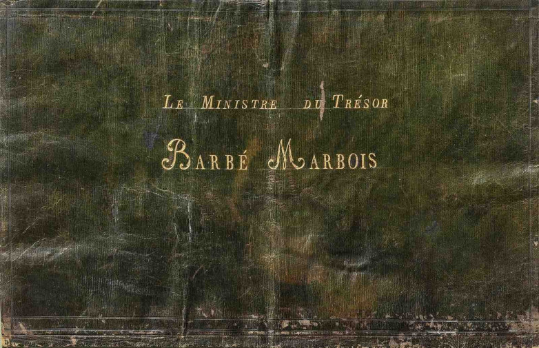 The portfolio is gold-stamped with the name of Francois Barbé-Marbois, the man behind the negotiations, for whom the deal was strategic. As he once reflected on Napoleon’s motivations, the sale was meant to prevent British domination of the Americas: “I shall be useful to the whole universe,” Napoleon wrote, “if I can prevent their [the British] ruling America as they rule Asia.” So momentous was the deal that even 150 years later he was commemorated on an American postage stamp.