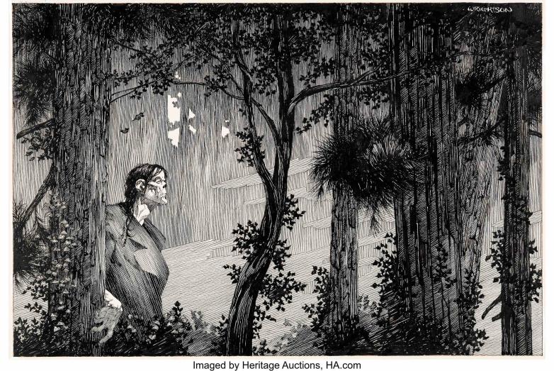 “Part of the popularity of Bernie Wrightson’s work stems from the unbelievable amount of detail he works into his images,” Heritage Auctions Vice President Todd Hignite said. “Look at it closely and you’ll see the incredible number of lines he has in everything, whether it is the Frankenstein character, the trees around him or even the background. The amount of work he invested in this powerful image, which offers a glimpse into the monster’s soul, is part of why it is considered such a masterpiece.”